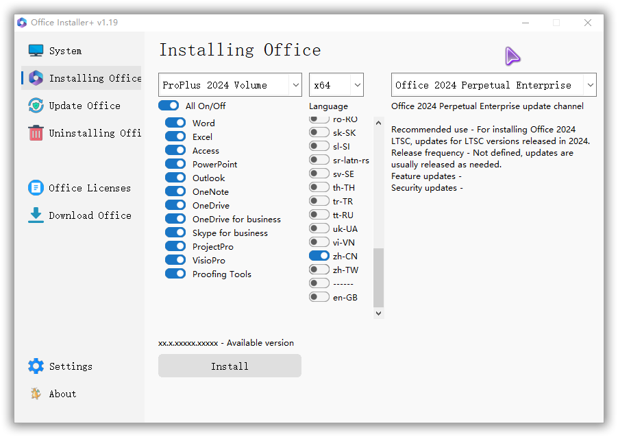 其中一个突出的功能是它能够简化 Microsoft Office 的安装过程。此工具无需手动选择和配置每个 Office 应用程序,而是自动执行该过程,从而节省您的时间和精力。无论您需要安装 Word、Excel、PowerPoint 还是任何其他 Office 程序,它都能确保您获得顺畅且轻松的安装体验。
