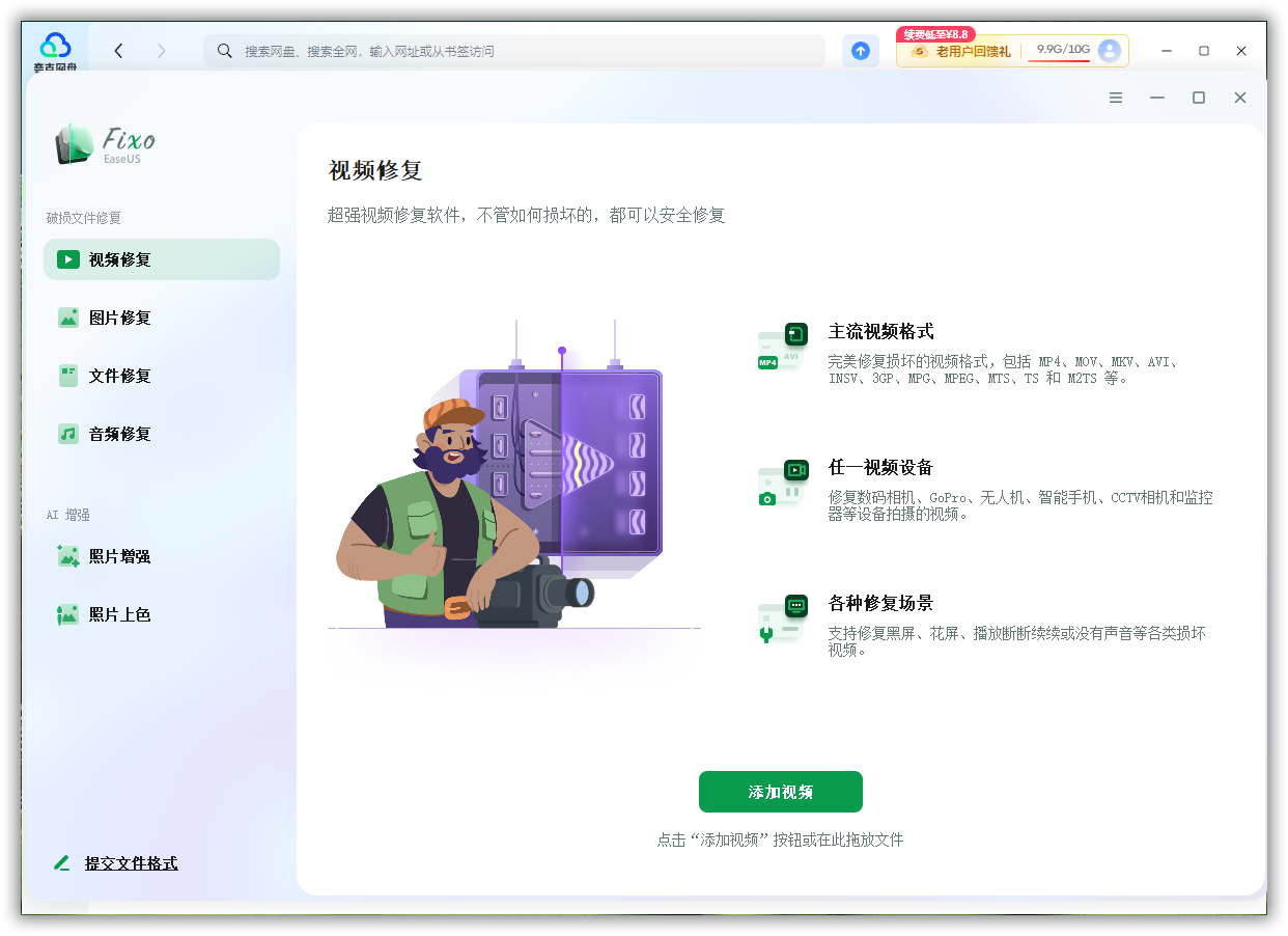 除了视频和照片修复外,它还提供文件修复功能。它可以处理各种文件格式,包括文档、演示文稿、电子表格等。如果您遇到损坏或损坏的文件,它可以扫描并修复它,恢复您的重要数据并确保它再次可访问。