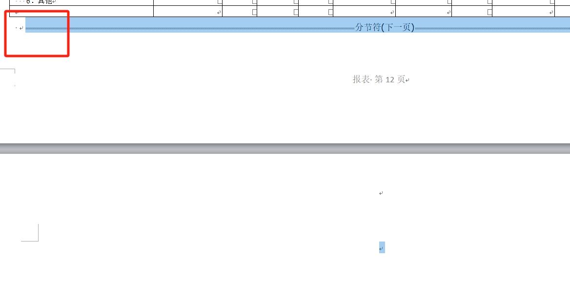 2.复杂情况:特别是表格,上下页页面布局(横向和竖向)不一致,删除分节符后,前面的页面布局变得跟后面的布局一样了,页面排版布局全乱了,这是由于分节符作用就是防止下一页的布局影响上一节的页面布局,只删除分节符,下一节的页面布局的设置没有变化,没有分节符约束,直接导致上一节布局改变。(即使把空白页的方向调整一致,由于整体页面格式与上一页不一致,删除分节符也会导致变化)。