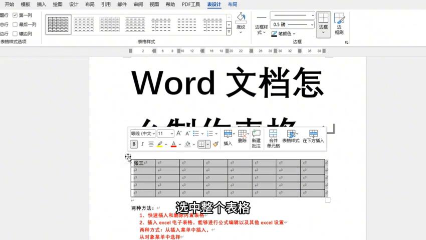 Word文档怎么制作表格?这里会讲解两个方法。第一个是快速插入和删除内置表格。第二个是插入一个Excel电子表格,能够进行公式的编辑以及其他Excel设置。这两种方法实际上是插入了不同类型的表格。