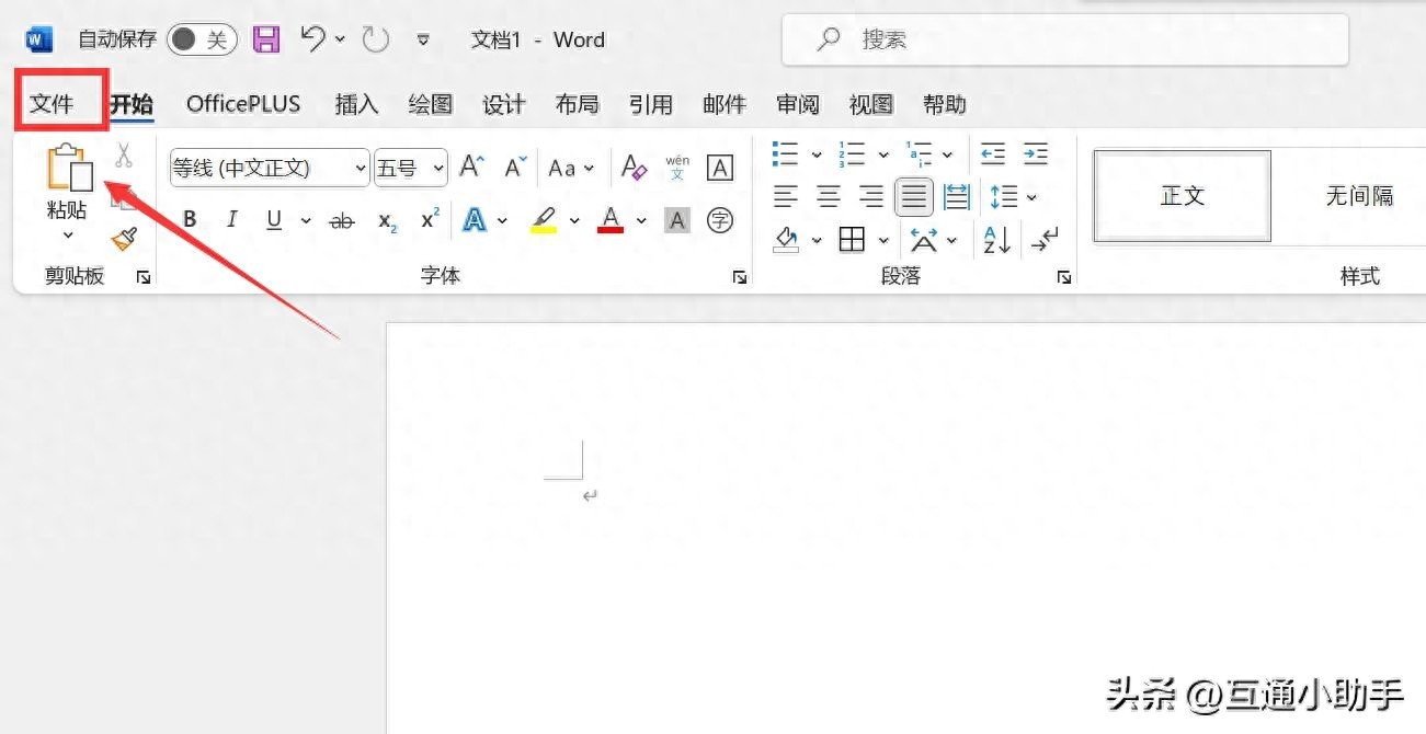 1、进入word后,点击“文件”。