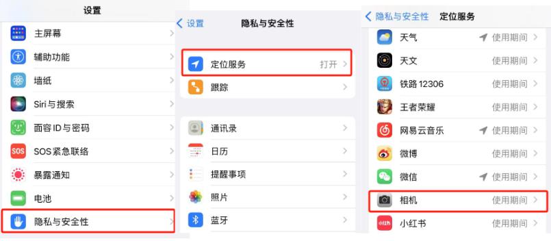 打开手机的“设置”,进入“隐私与安全性”选项,在“隐私与安全性”设置中,选择“定位服务”,找到并点击“相机”,然后将相机的定位功能设置为“永不”。