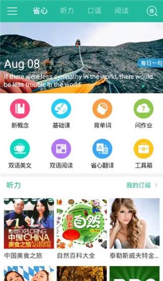 本来是偶然别人推荐听读新概念学习的,然后才发现该软件有快速掌握英语听、说、读、写的基本技能。同时也提供了丰富的学习资源,包括听力、口语和阅读材料,覆盖从新概念英语到初中、大学乃至出国考试的重点单词和语法。省心英语的特点包括屏幕取词、聊天机器人、音标、语法学习、多行业英语听力素材、双语美文和新闻速递等。用户可以通过调节播放速度来适应不同的学习需求,软件还提供了个性化的学习任务,帮助用户更好地掌握和应用所学知识。此外,省心英语支持离线收听,节省流量,并提供智能实时口语评分和单词背诵功能,使用户能够高效学习。