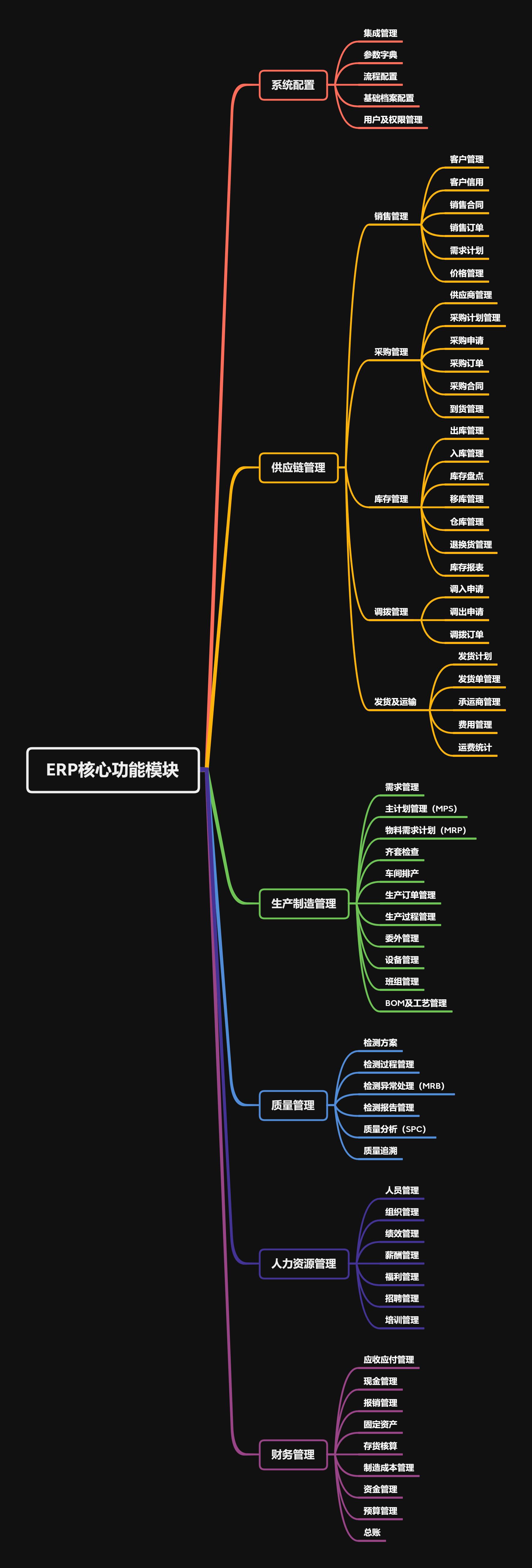 我们对ERP系统中的一些重点功能模块进行汇总: