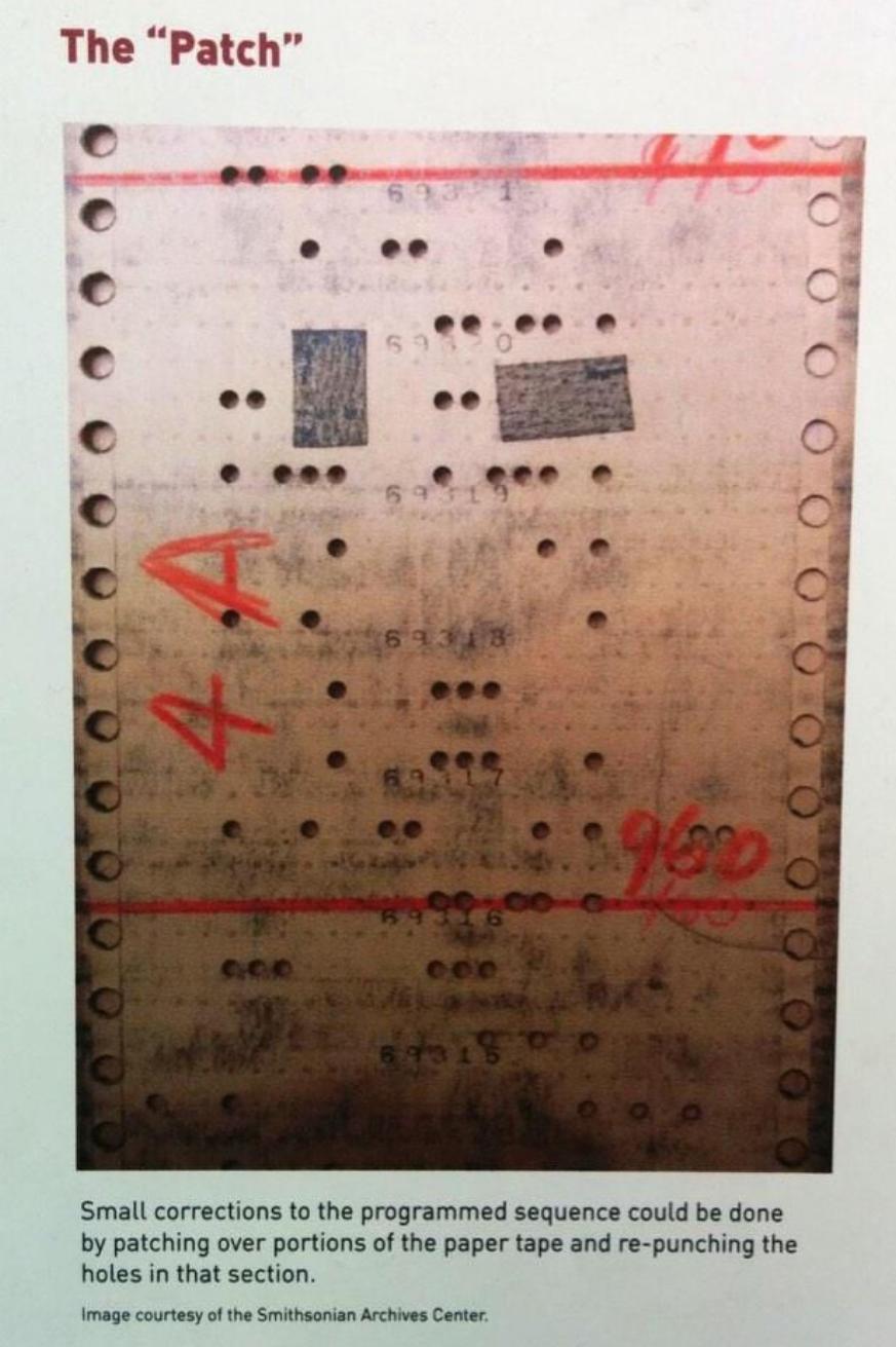 “补丁”的历史要从美国第一台机电计算机Harvard Mark I说起。Harvard Mark I的生产和设计者起的名字是全自动化循序控制计算机(Automatic Sequence Controlled Calculator,缩写为ASCC), 它使用的纸质程序表全自动运算,一旦开始运算便无须人为介入。 由于程序是通过读取打孔来执行的,因此如果打错了孔的位置,则通过真正的“布”打补丁来填充孔,并在正确的位置重新打孔来纠正程序。