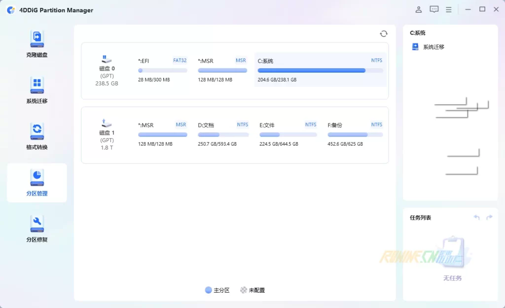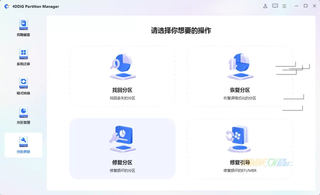 4DDiG Partition Manager 是一款专业级的磁盘管理工具,集分区调整、系统迁移、系统下载升级、格式转换、数据克隆与修复以及工具箱于一体,为大家提供一站式的磁盘管理和各种功能辅助。