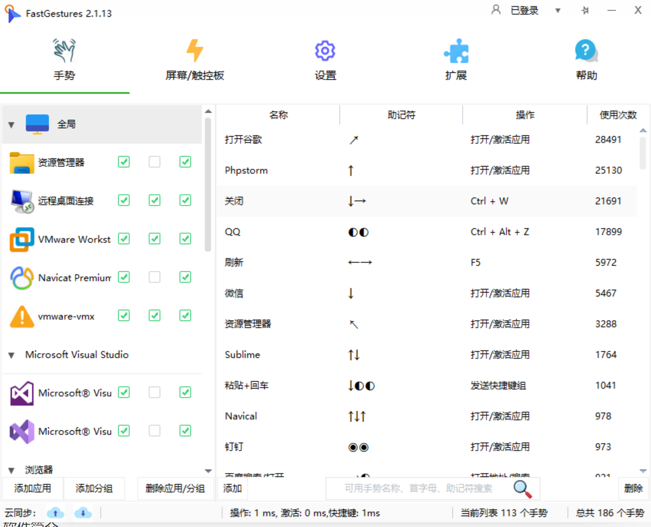 可视化设置:FastGestures提供一个可视化的设置界面,用户可以直观地设置手势和关联的功能,并即时预览效果。