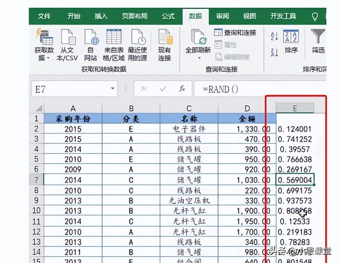 如果你要把表格的排序打乱,那么随机排序就派上用场了,首先得在空白列中先输入一个能产生随机小数的函数:=RAND() 就会出现一串数字,这一列排序几次,RAND会生成不同的小数,几轮下来,数据就变成乱序了,自然也就能达到排序打乱的目的了。