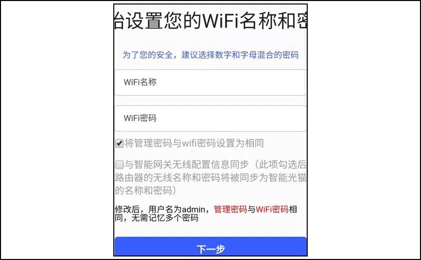 五.根据提示设置你的360路由器的无线名称和密码——>点击"下一步"即可,如下图所示。