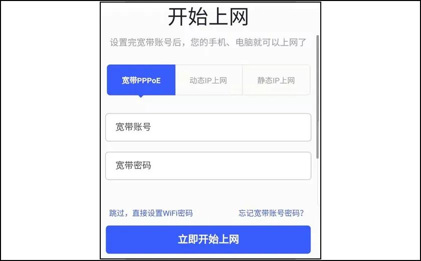 四.根据提示设置360路由器的上网方式——>80%的用户使用的是宽带拨号上网——>输入宽带账号密码——>点击"立即开始上网"。
