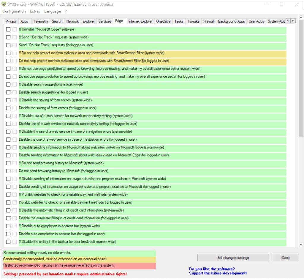 恢复默认设置:如果用户希望重置隐私设置,W10Privacy 提供了一键恢复默认设置的功能。这使得用户可以在需要时轻松返回到初始状态,避免因误操作导致的问题。