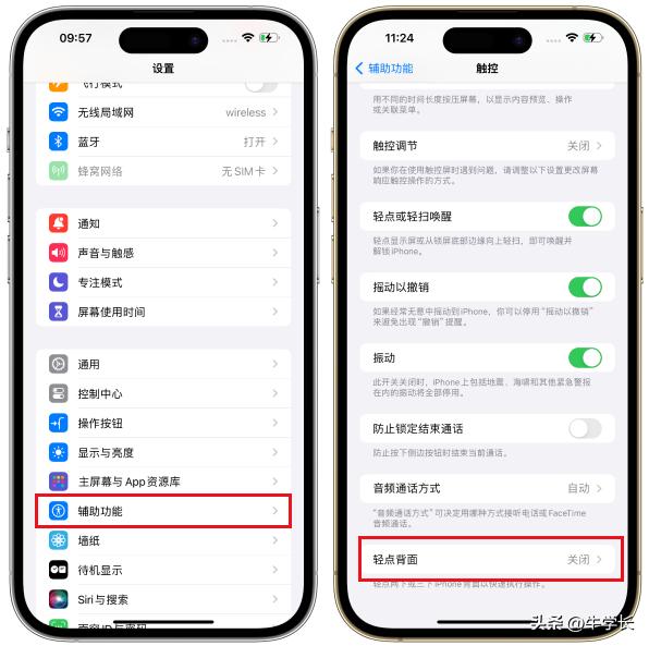 设置步骤:打开「设置」-「辅助功能」-「触控」,拉到最下方找到轻点背面的选项点进去。