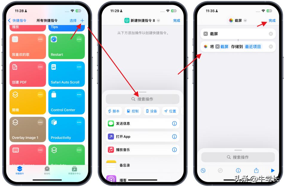 截图快捷指令设置步骤:打开快捷指令APP,点击右上角「+」新建指令,然后在下方搜索操作框搜索截屏找到【截屏】指令添加,然后搜索照片找到【存储到照片】指令添加,最后点击完成保存即可。