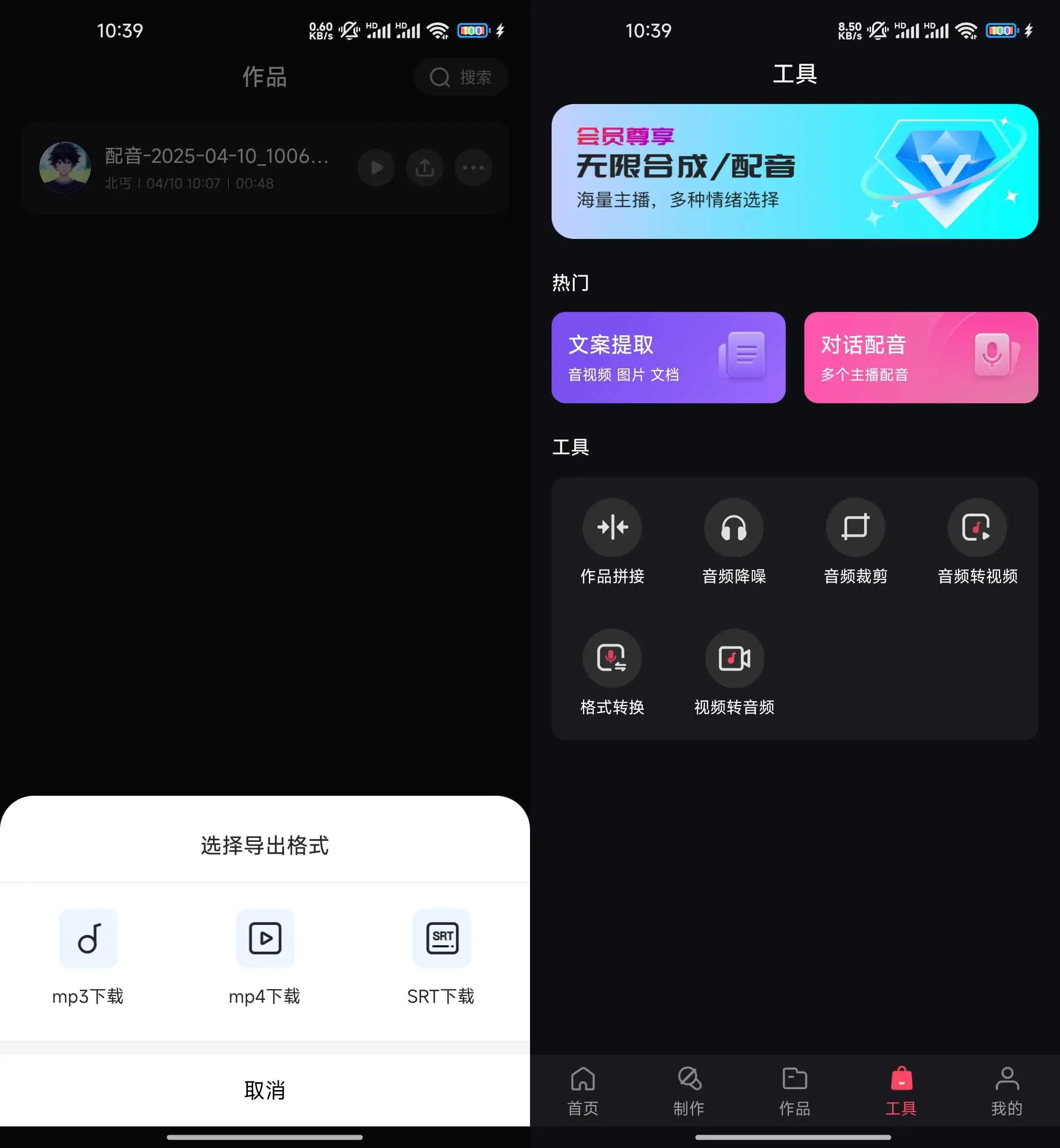 经实测,软件稳定可靠,支持导出MP3、MP4、SRT等常见格式,完全满足各种使用需求。