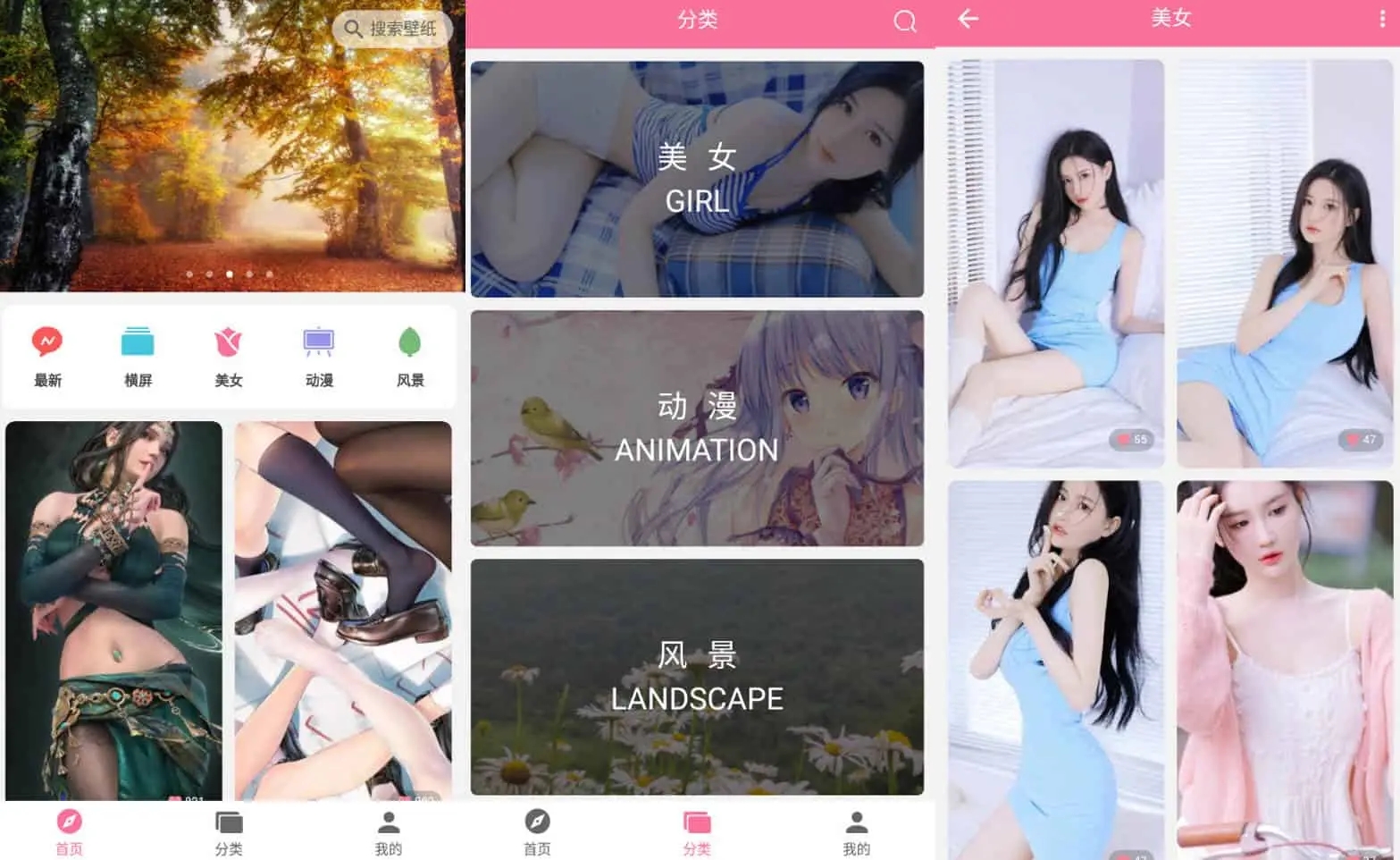 壁纸喵app是一款壁纸专用软件,界面分类非常简单,有最新的壁纸,也有横屏壁纸,还有各种美女,动漫,风景类的壁纸,也是大家用的比较多的一种,除此之外,还有文字类,科幻机械类,城市动物类,让大家可以根据喜好进行选择,而试验田的壁纸生成功能则可以生成纯色壁纸,喜欢简洁的朋友可以试试。