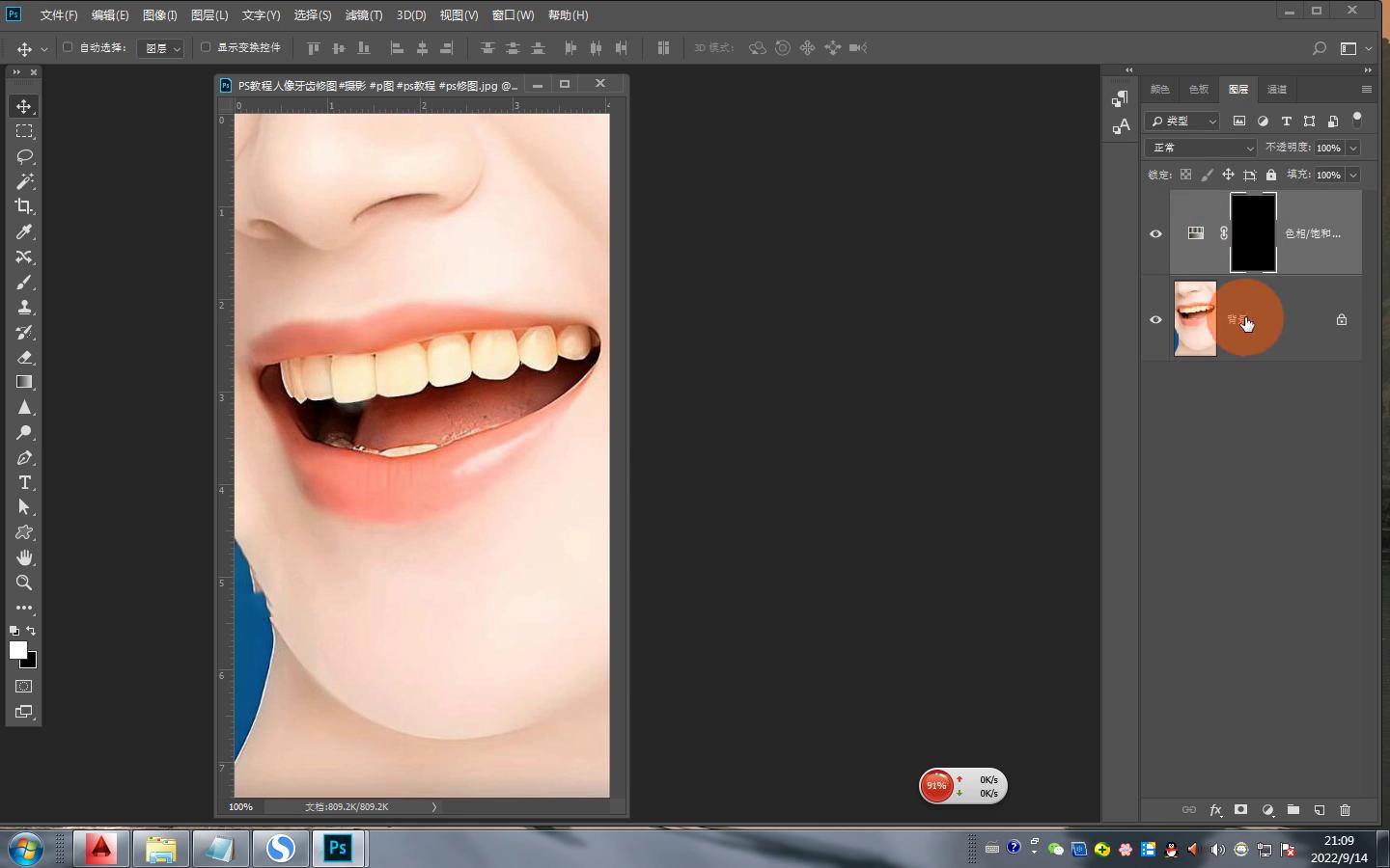 ·会计是ctrl加按键在图像调整里面反向,不是反向选择。有好多学生、好多粉丝有反向选择是不可以的,再说反向选择不可以用,所以反向勾,黑蒙版就白蒙版变成黑蒙版。变成黑蒙版就相当于看到最后,就看到下面的效果,也就是这个地方皮肤和牙齿都填充了黑色,又恢复到背景也就是打开的状态。