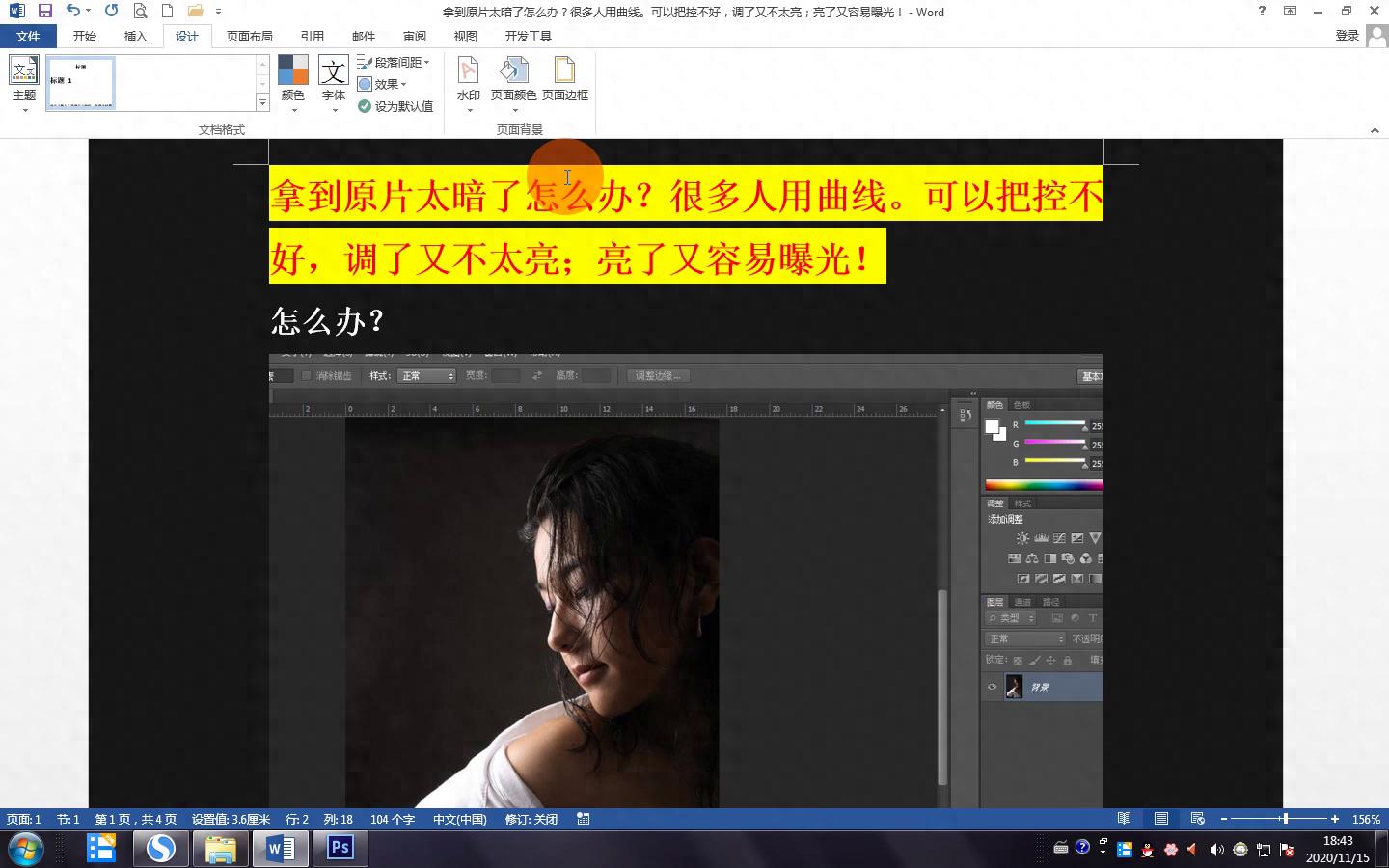 拿到原片太暗了怎么办?很多人用曲线,单曲线虽然用起来是相对来讲比较简单,但是最大问题是有时把控不好,调的不太亮,亮又容易曝光,怎么办?比如这个女孩子,怎么调?这个女孩原始的有点暗,对比都不行。通过另外一种方法。