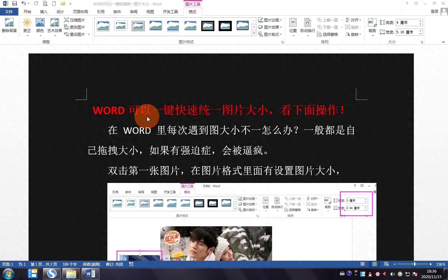 WORD里面可以一键快速统一图片大小,看下面怎么操作!在WORD里每次遇到图片大小不一怎么办?一般都是自己拖拽大小,如果有强迫症会被逼疯。具体方法是这样的: