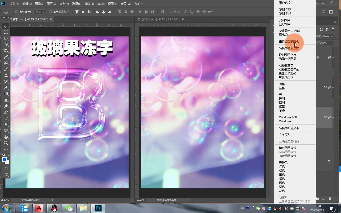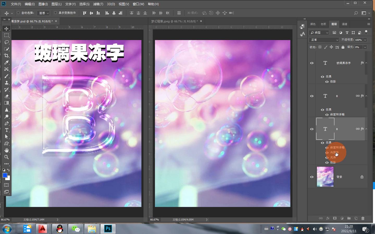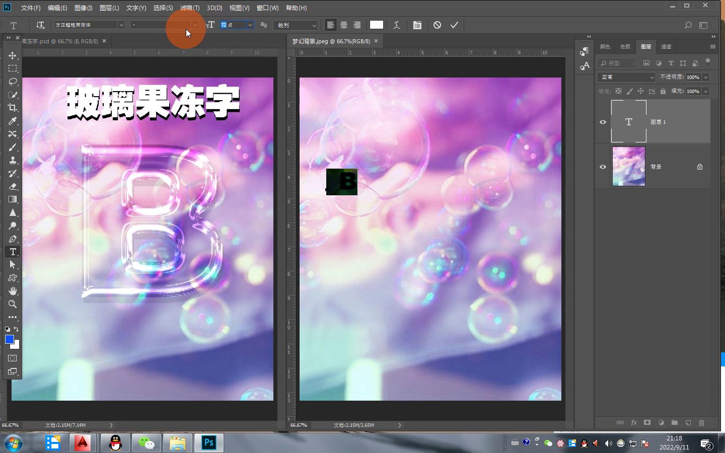 ps如何制作这种玻璃果冻字?这种字体还比较好看的,看一下,镂空的并且这种玻璃果冻这种效果。怎么制作?