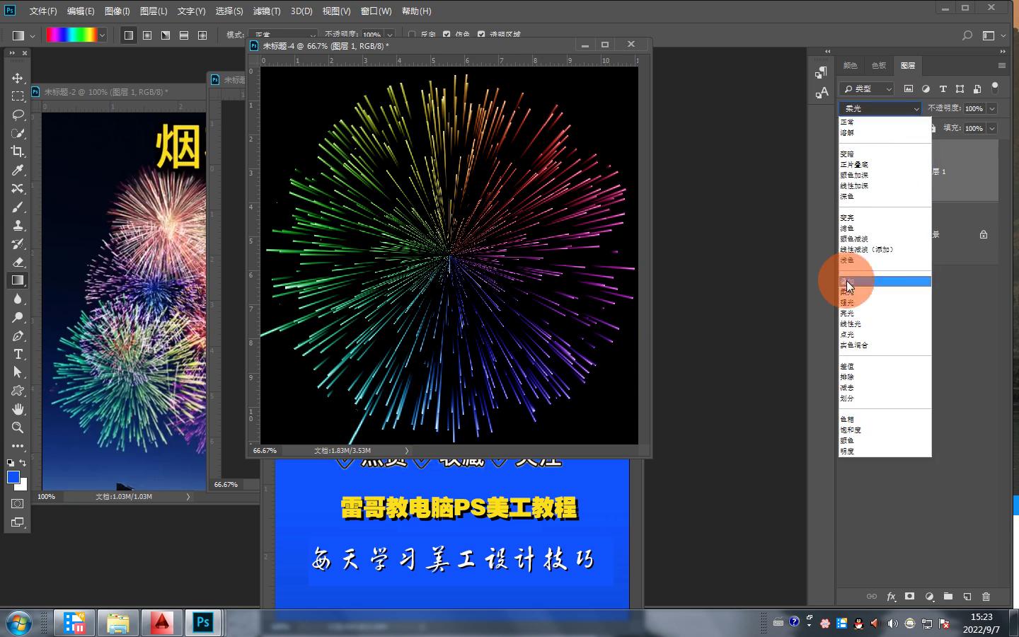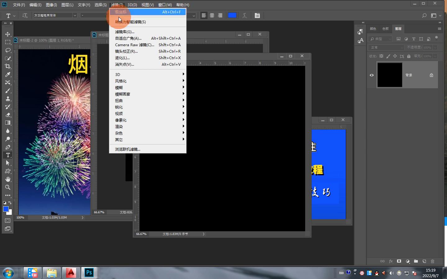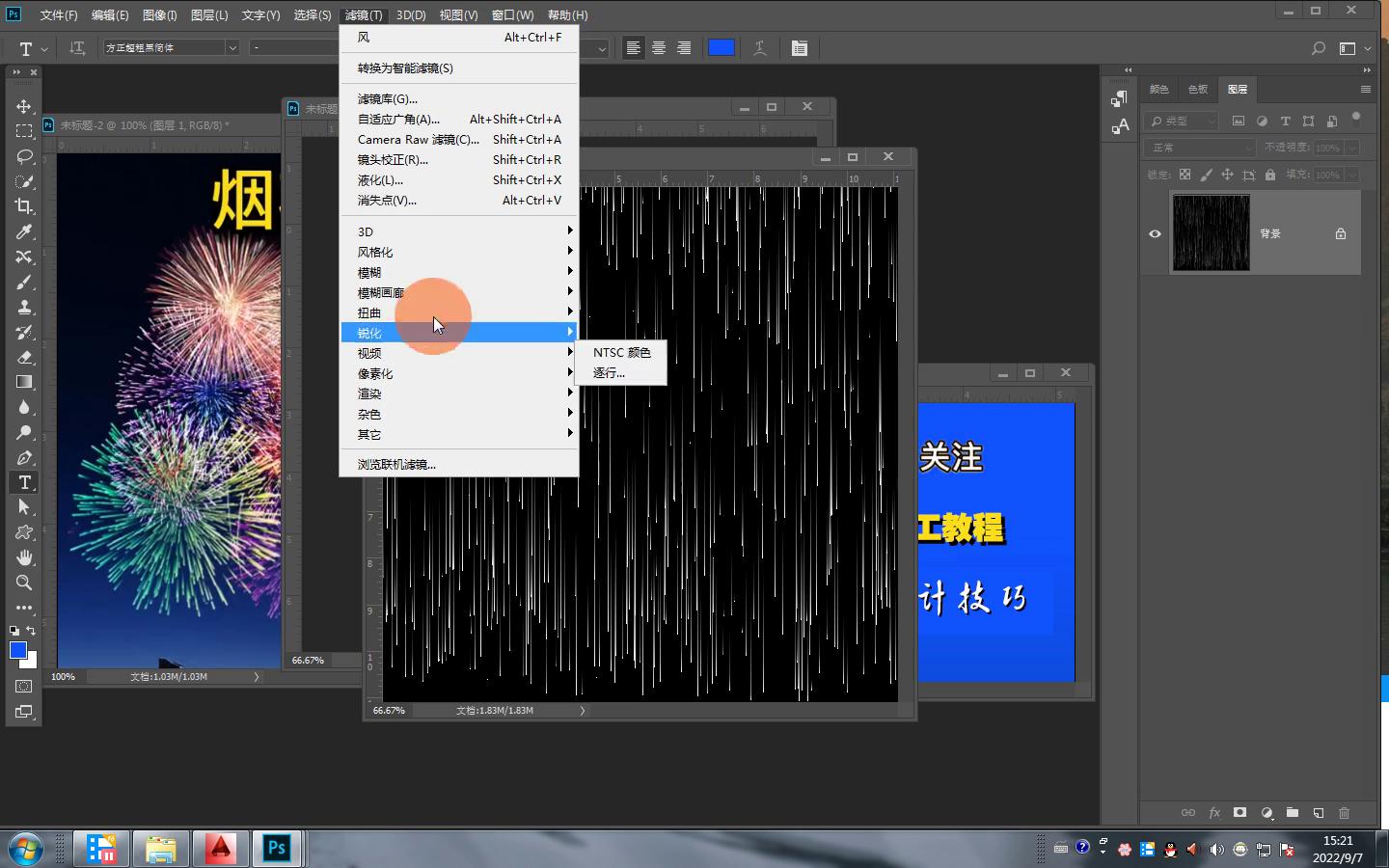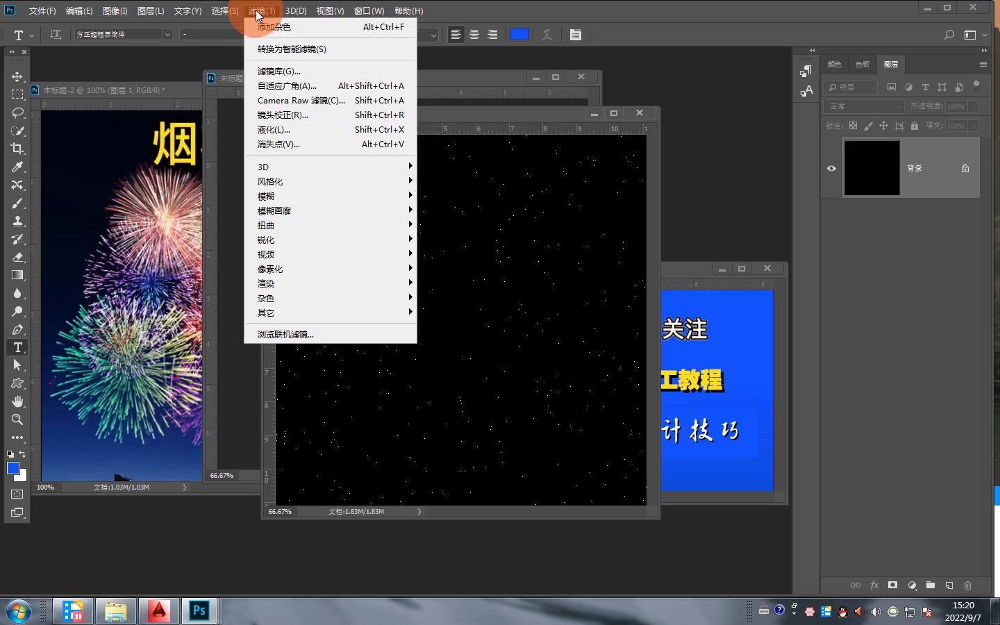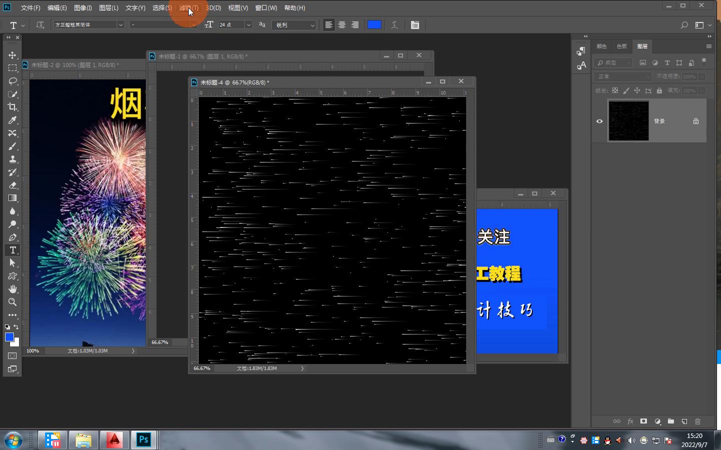 ·第七步,看烟花有放射状的拖尾的效果,所以要用滤镜里面风格画风。