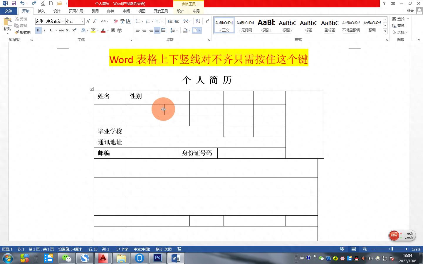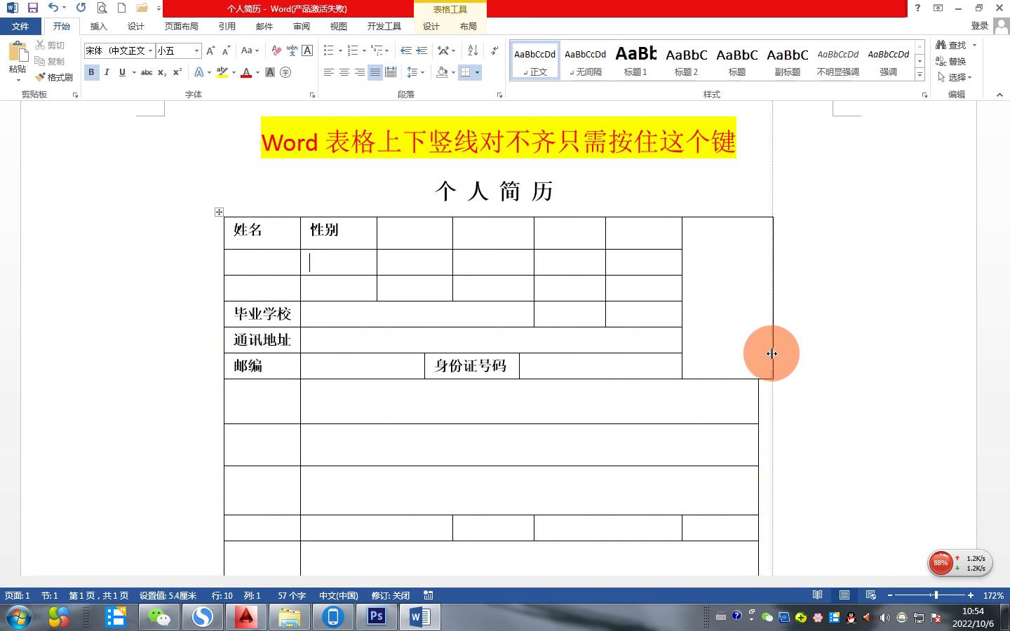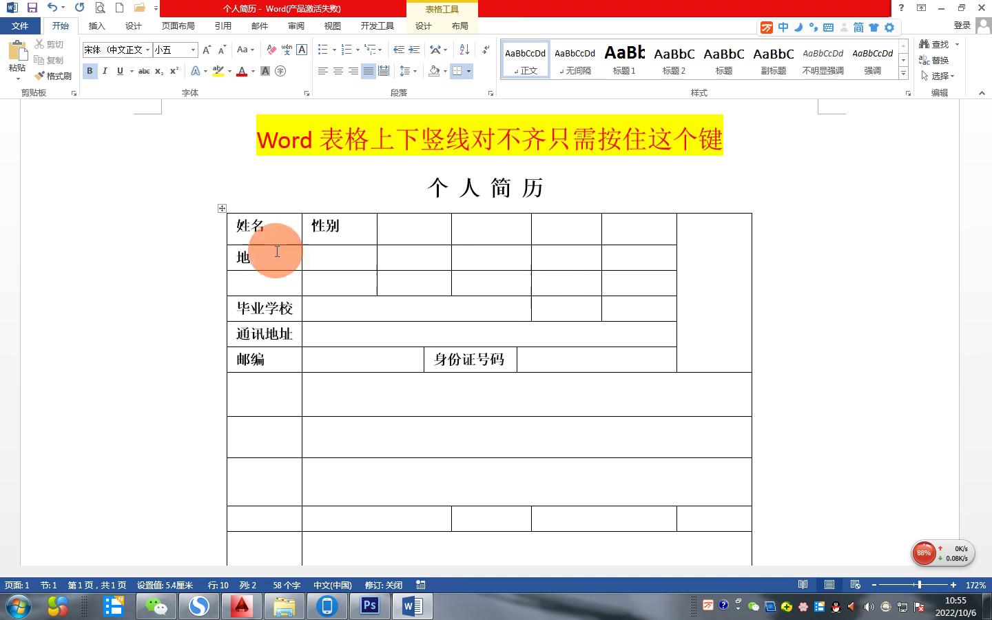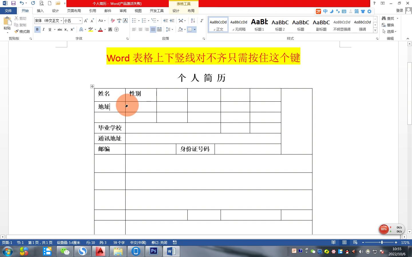 反过来理解什么意思?如果表格需要某个单元格不对齐,比如性别下面这个单元格要长一点,比如这地方要填地址,地址这一栏肯定要长一点。如果末了这个单元格很小,想把这个单元格变大点怎么办?其实原先讲过的教程也是一个学生问的,今天再说一下。