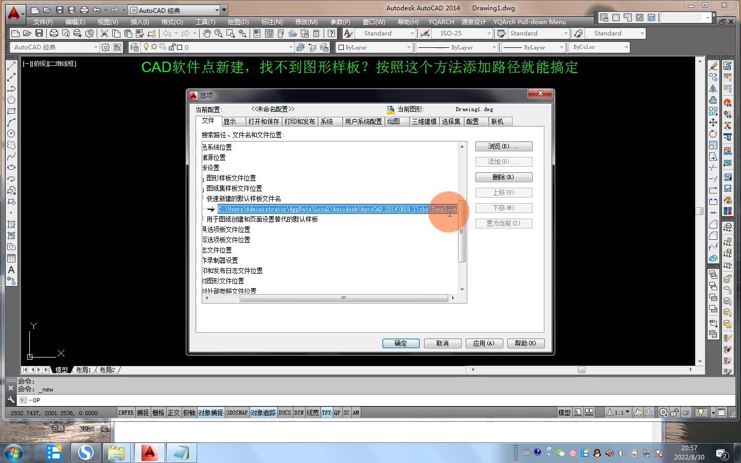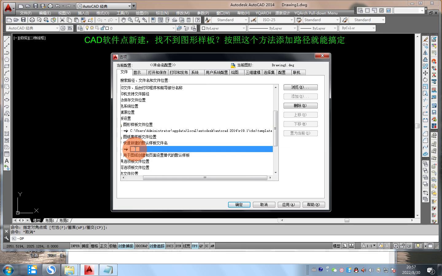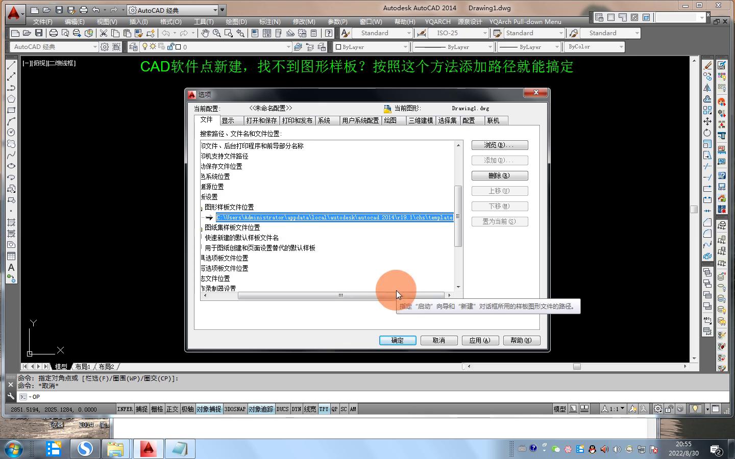 ·在命令行输op空格,一般是可以的。op勾完然后选择第一个选项上文件,然后找到样板,样板属于样板位设置,在数据原位置和工具选项板位置中间点击样板加号展开,有四个加号,当然选择第一个加号,第一个加号展开会出现样板的位置,这就是样板的位置。