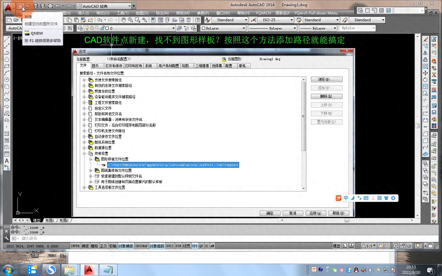 最近有个粉丝问了有什么?就是在cad新建文件上,也就是ctrl加i或者是点击文件新建,或者在边点上说有空格。新建文件ctrl或者6,或者是点击新建文件块按钮,它会出现空白的,也就是文档位置有问题,找不到这种文档。有的学生有的粉丝是无从下手,这什么原因?