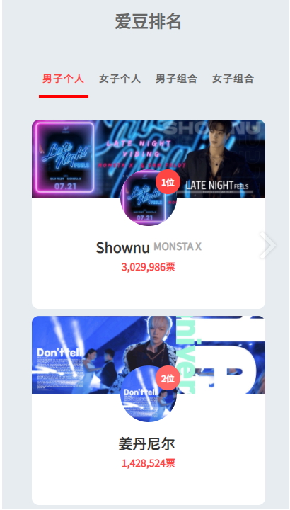 2、豆排行榜已设置。 粉丝需要投票和支持来提高豆的知名度。