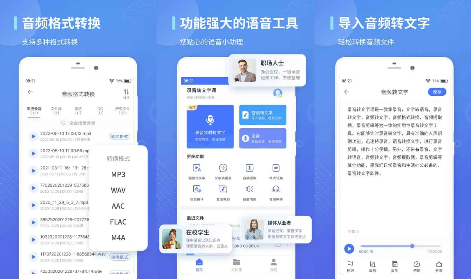 录音转文字通的功能非常强大,在工作或日常生活中直接录音之后再转文字可以大大节省做笔记的时间,除了转文字外,你还可以将文字转为语音,可以自由选择输出的语音类型,这点可以在做视频的时候用上,需要就来下载吧。