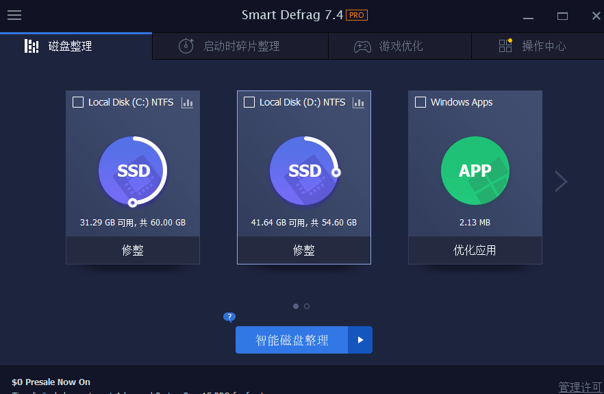 IObit Smart Defrag是一款免费的磁盘碎片整理工具,它可以帮助用户优化磁盘性能,提高系统运行速度。它采用安全稳定的碎片整理算法,可以快速整理磁盘碎片,提高磁盘读写速度和系统响应速度。此外,它还支持自动整理、定时整理、启动时间优化、游戏优化等功能,可以满足用户不同的需求。IObit Smart Defrag界面简单易用,操作方便快捷,是一款非常实用的工具。