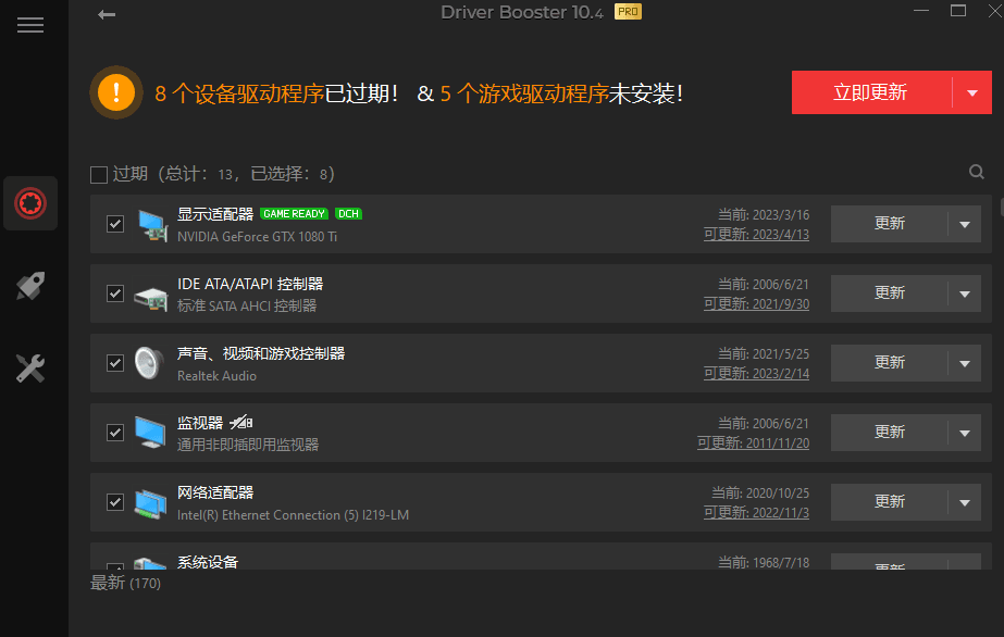 IObit Driver Booster是一款免费的Windows驱动程序更新工具,可以帮助用户快速识别和更新计算机中过时、丢失或损坏的驱动程序。它支持大量的设备驱动程序,包括显卡、声卡、网卡、主板芯片组、USB驱动程序等,并能够自动扫描和识别所有需要更新的驱动程序。IObit Driver Booster还提供了备份和还原功能,可以帮助用户在升级之前备份当前的驱动程序,以防止出现任何问题。此外,它还提供了一个非常方便的恢复点功能,允许用户在出现问题时轻松地恢复到之前的状态。总的来说,IObit Driver Booster是一个易于使用且功能强大的驱动程序管理工具,可以使您的计算机始终保持最新的驱动程序,从而提高系统性能和稳定性。