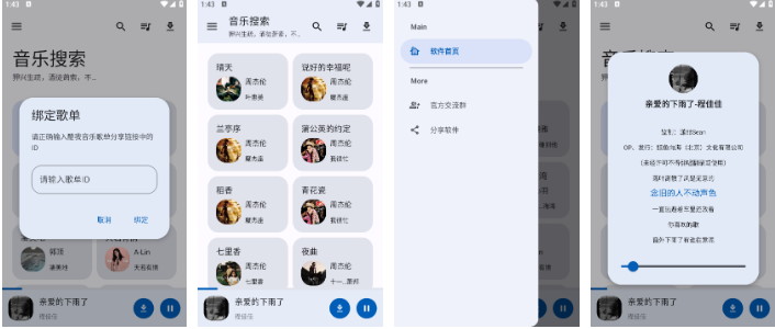 音乐搜索app是一款为音乐爱好者设计的手机在线听歌软件。这款软件内含大量流行、时尚、潮流音乐资源,让用户随时随地畅享音乐世界。它的独特之处在于,即使一些热门歌曲需要付费,在这里也能免费听到。音乐搜索app支持多种音质下载,无需VIP,没有下载限制。软件的个性化推荐系统根据用户的听歌历史和偏好进行智能推荐,搭配强大的搜索引擎、高清歌手图像、多个潮流榜单以及智能频道切换,提供了一流的用户体验。此外,它还支持歌词翻译和离线下载功能,为用户提供了更多便利。