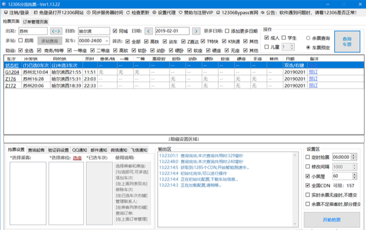 分流抢票软件12306Bypass是一款免费的春节抢票神器,完全免费的12306抢票软件,功能强易使用,全程自动抢票,云打码自动识别验证码,多线程秒单、稳定捡漏,支持多天、多车次、多席别、多乘客、短信邮件提醒等功能。这款辅助软件更新勤快,适合长时间挂机自动抢票自动发送通知,同时刷到票后自动提交订单你只要付款即可,可以直接在工具内查询订单和付款以及退票操作等,助你回家抢车票不在困难。