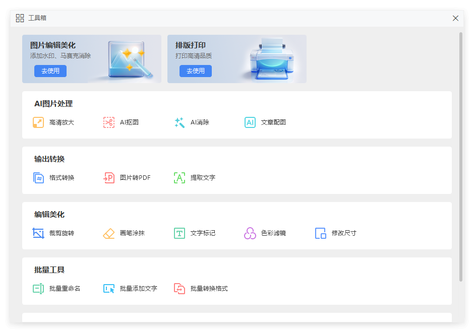 该版去除了点击 图片转PDF 或 图片提取文字 等功能自动下载安装360安全浏览器功能,如需要该功能可手动安装或者带参数(–silent-install –force-install –secore-install –secore-forsdk –install-path=”%appdata%\secoresdk”)纯净释放安全浏览器文件