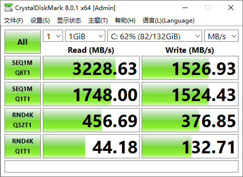 显示测试结果:CrystalDiskMark会将测试结果以图表和数字的形式显示出来,让用户直观地了解硬盘的各项性能指标。