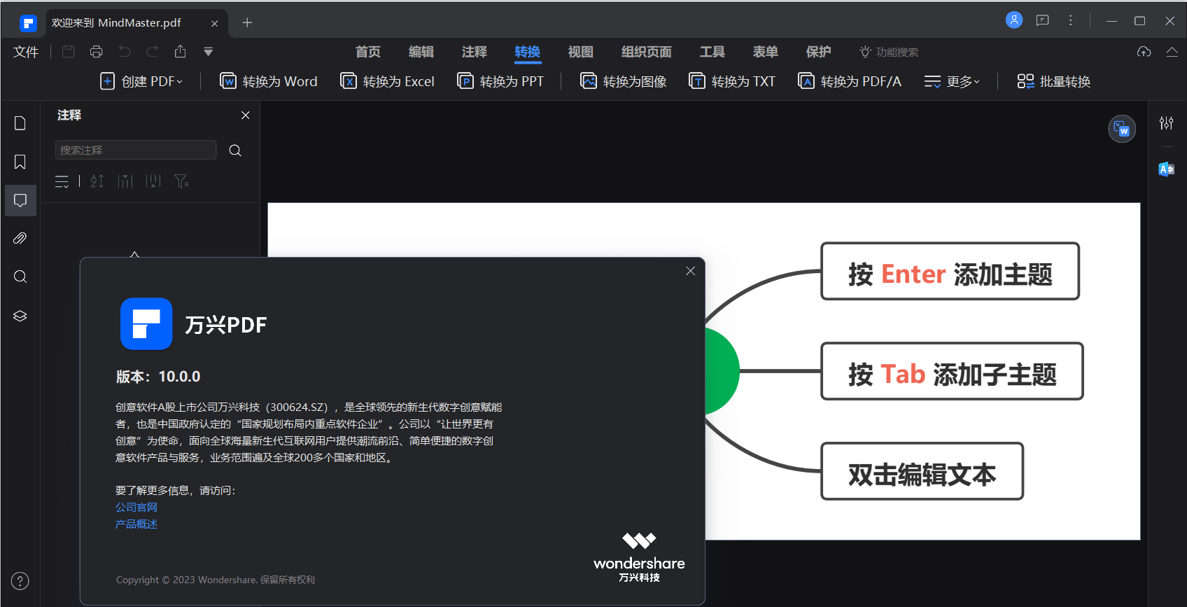 Wondershare PDFelement 是一款用于一般 PDF 文档编辑的程序,一款一体化工具。编辑功能包括支持更改文本和字体。已经实现了对OCR(光学字符识别)技术的支持,有一种将文档转换为各种格式的模式,支持将自己的图片添加到文档中,您可以对页面进行编号以便将来快速移动。万兴PDF专家可以将您需要的表格添加到文档页面;有一种模式可以让您将多个文档合并为一个;当然,它也不是没有添加您自己的注释的功能。如果需要,可以在编辑后使用密码保护文档,并可以安装数字签名。