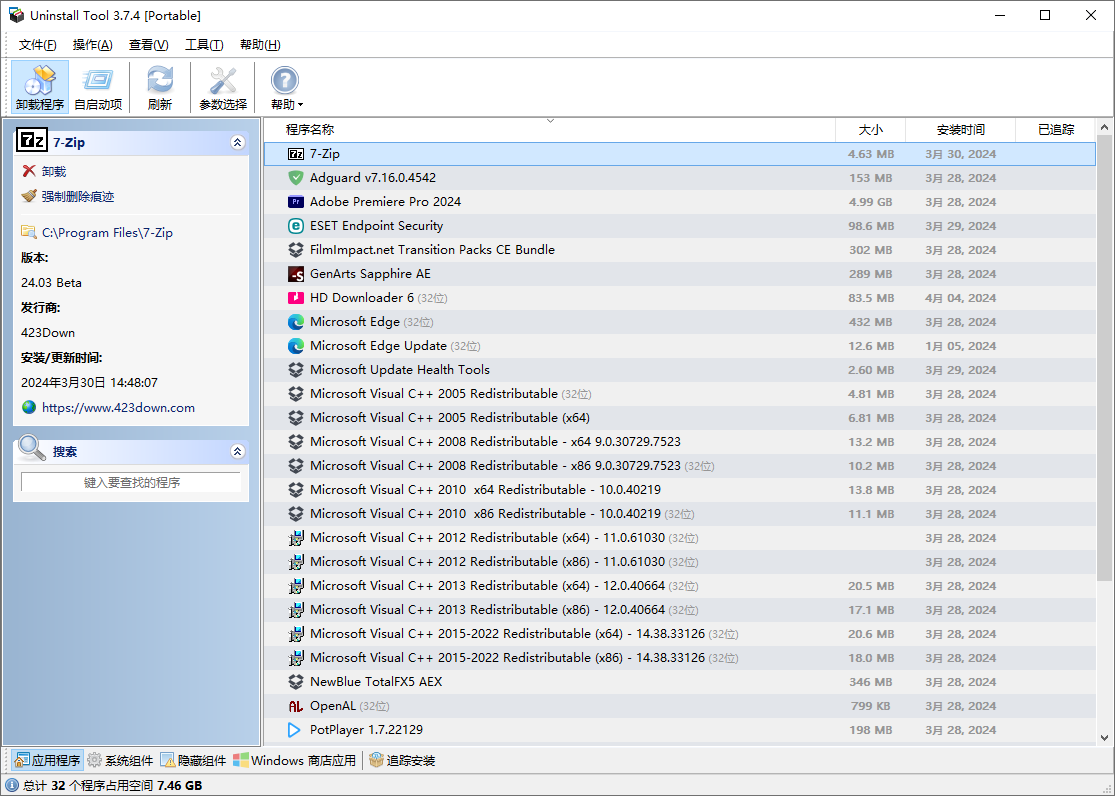 Uninstall Tool 是一款非常好用的卸载工具。卸载工具是系统小程序“添加或删除程序”的快速、强大且可靠的替代品。这是删除不必要的应用程序并提高计算机性能的安全、可靠和便捷的方法。卸载工具具有大量功能:它显示隐藏的已安装程序、按给定过滤器对软件列表进行排序、删除不正确安装和卸载的程序,以及可以将已安装程序列表导出为 HTML。