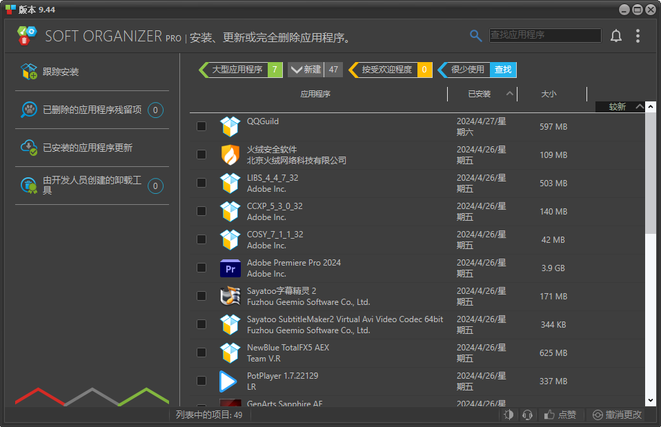 通常,卸载程序后,它们的痕迹会保留在系统上、磁盘上不必要的文件和文件夹以及注册表中的条目中。即使应用程序是根据所有规则使用其自己的卸载程序(用于卸载其开发人员创建的程序的工具)卸载的,也会发生这种情况。 Soft Organizer(以前称为“完全卸载”)旨在解决此问题:它将从系统中完全删除不必要的应用程序。