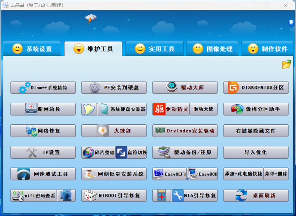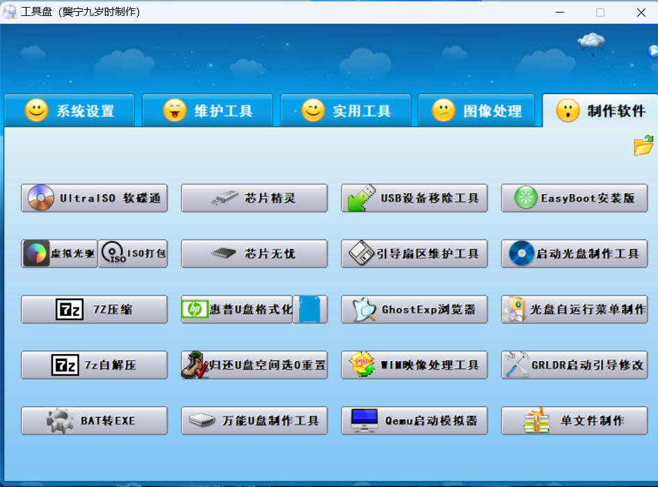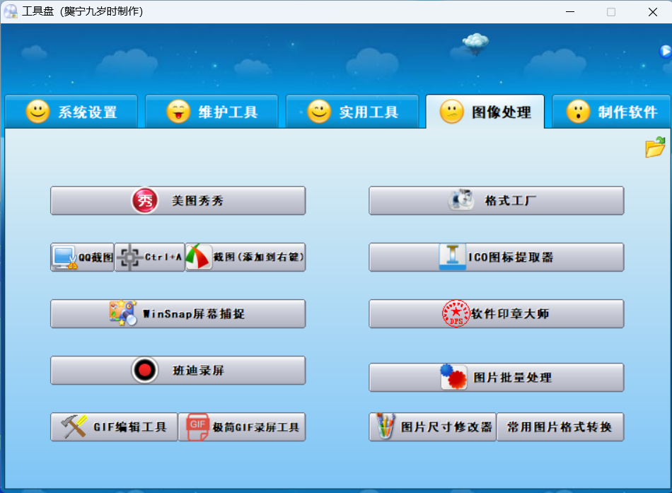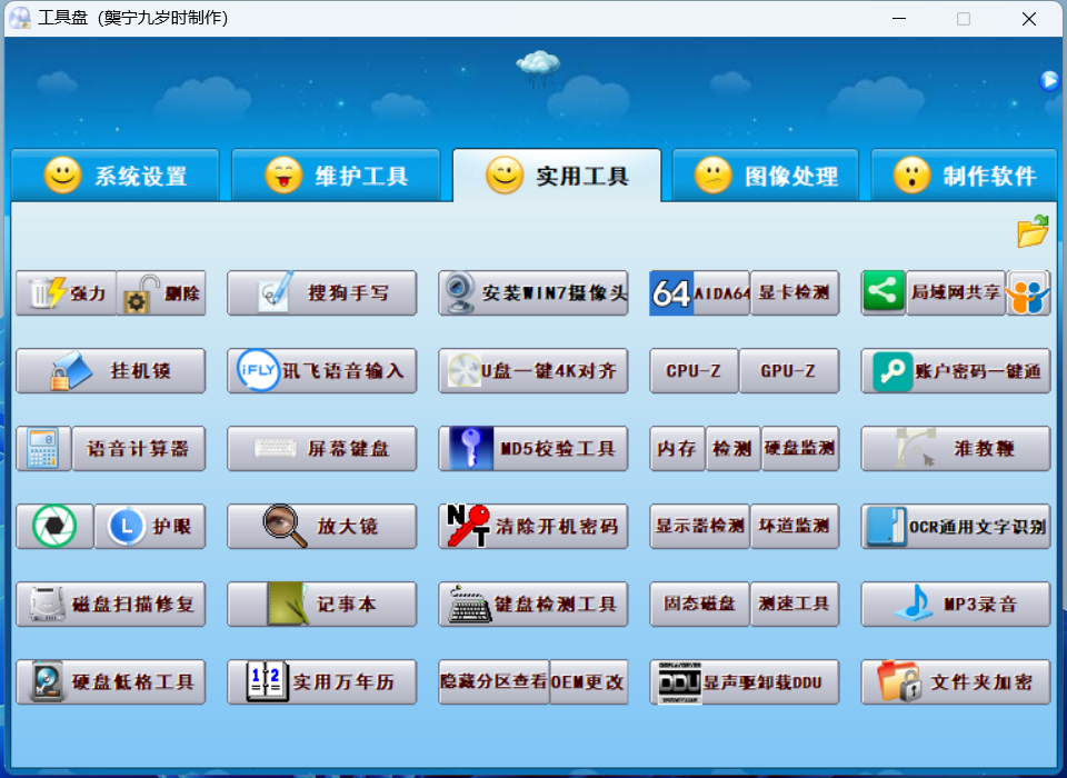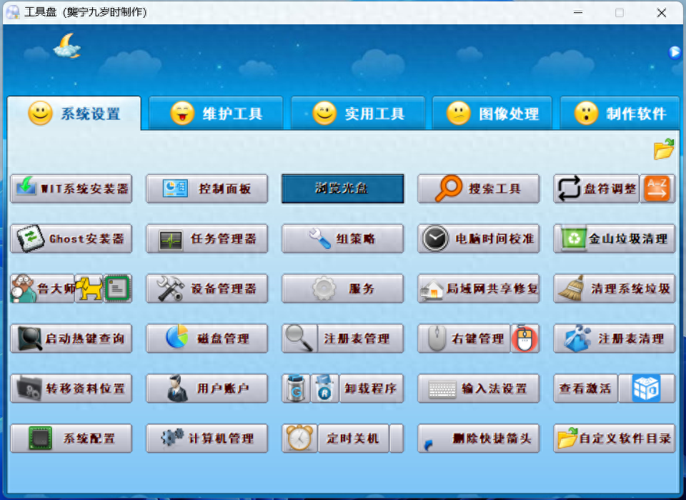总体来说,小明工具箱将所有工具分为了系统设置、维护工具、实用工具、图形处理、制作软件五个大类。