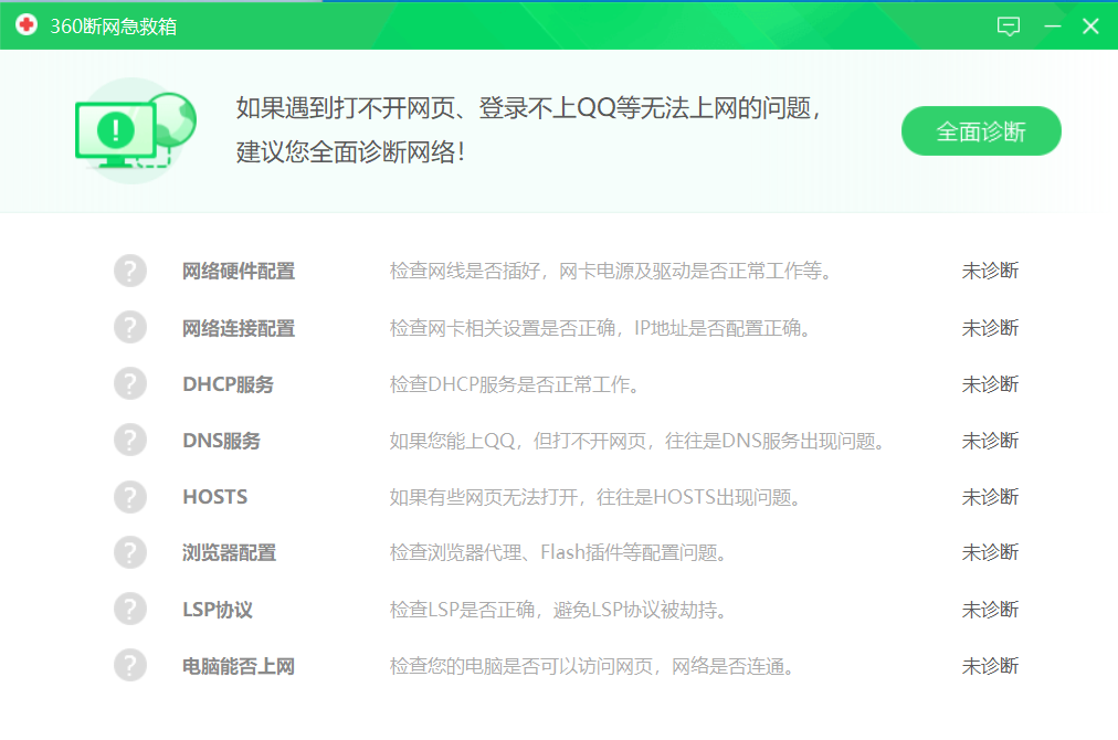 有的时候,电脑无缘无故断网,原因可能会有很多,提取自 360 卫士的断网急救箱可以为你提供一臂之力。