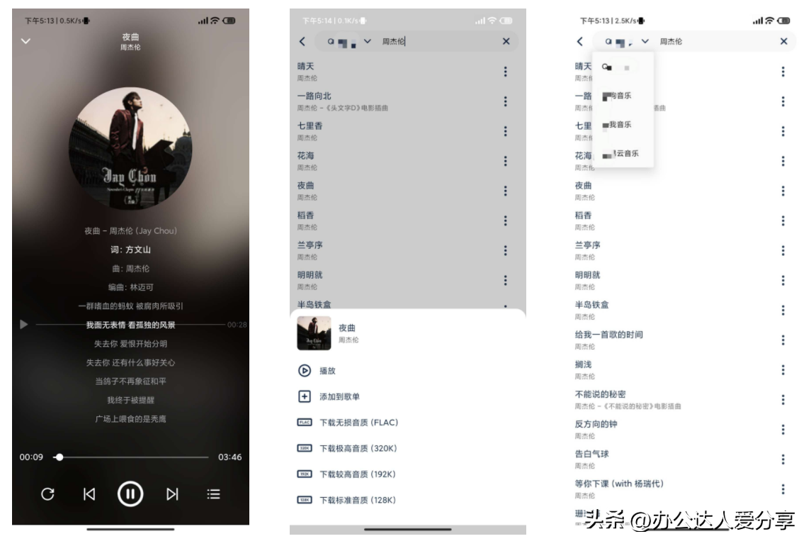 支持标准、极高、无损、Hi-Res等音质;支持搜索单曲、专辑、歌单、歌手等;支持网易云、QQ音乐、本地等歌单。