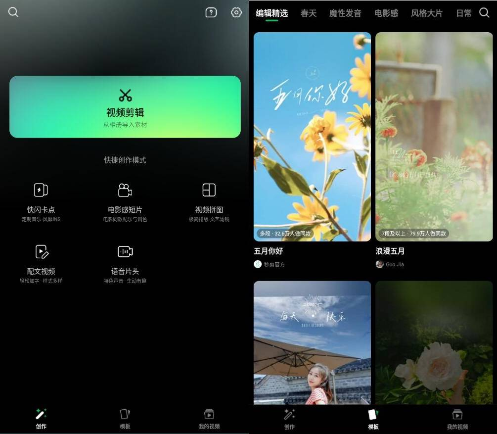 功能强大的滤镜、转场、特效、花字、贴图、字幕等功能在秒剪中都有,并且每一个都精心设计,如果你是剪辑小白也不用担心,会由专业的剪辑师自动完成剪辑,同时智能推荐海量曲库帮你完成搭配。秒剪,致力于让每个人都可轻松制作视频。