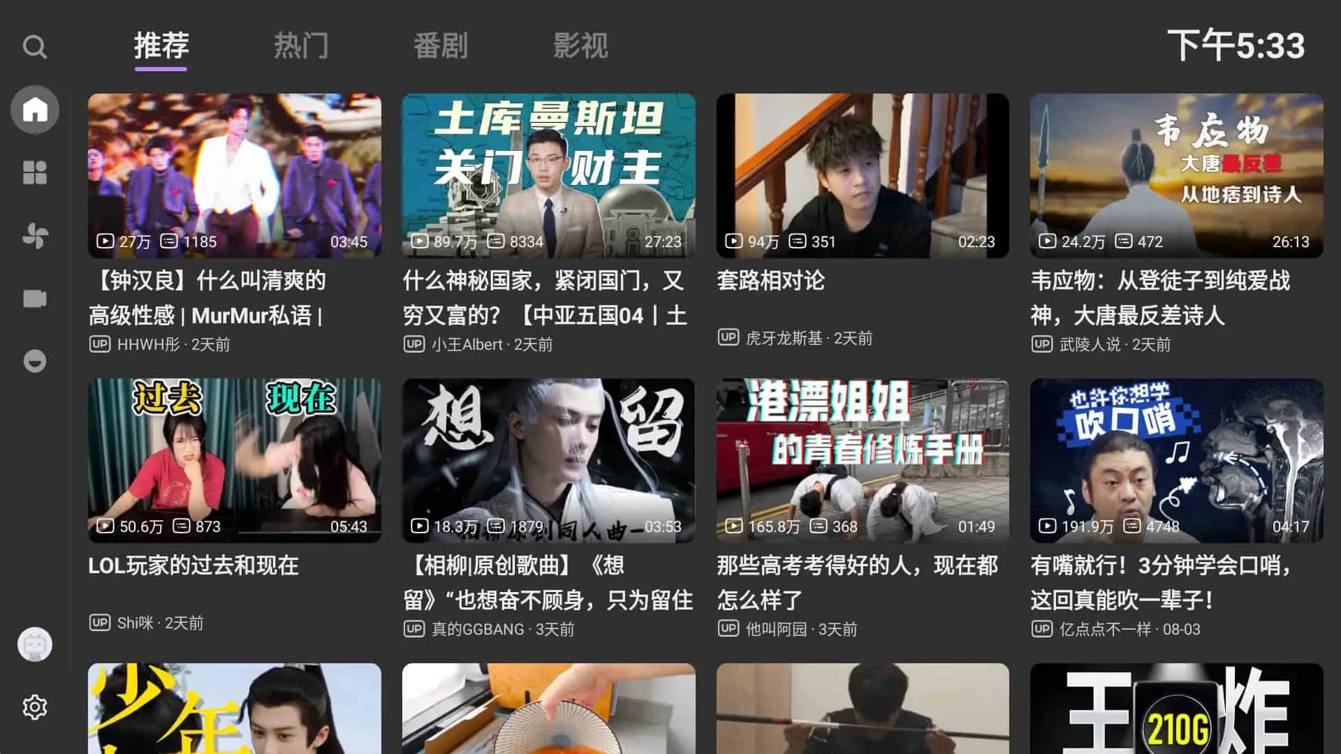 BBLL一个哔哩哔哩第三方TV版同时支持pad版;视频内容方面支持各类番剧、支持动态视频、支持关注、支持搜索,可以说综合了哔哩哔哩tv版和BV的功能。